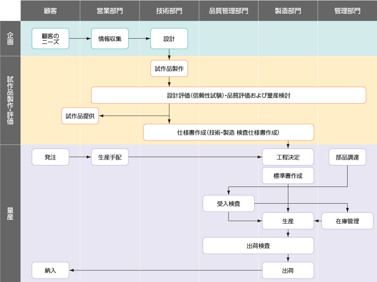 株式會社バルコムではお客様のご要望および契約に準じ、製品の発注から納品まで充実した體制で対応いたしております。(品質體系図「企畫~量産」をご覧ください。)