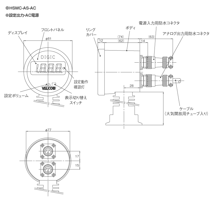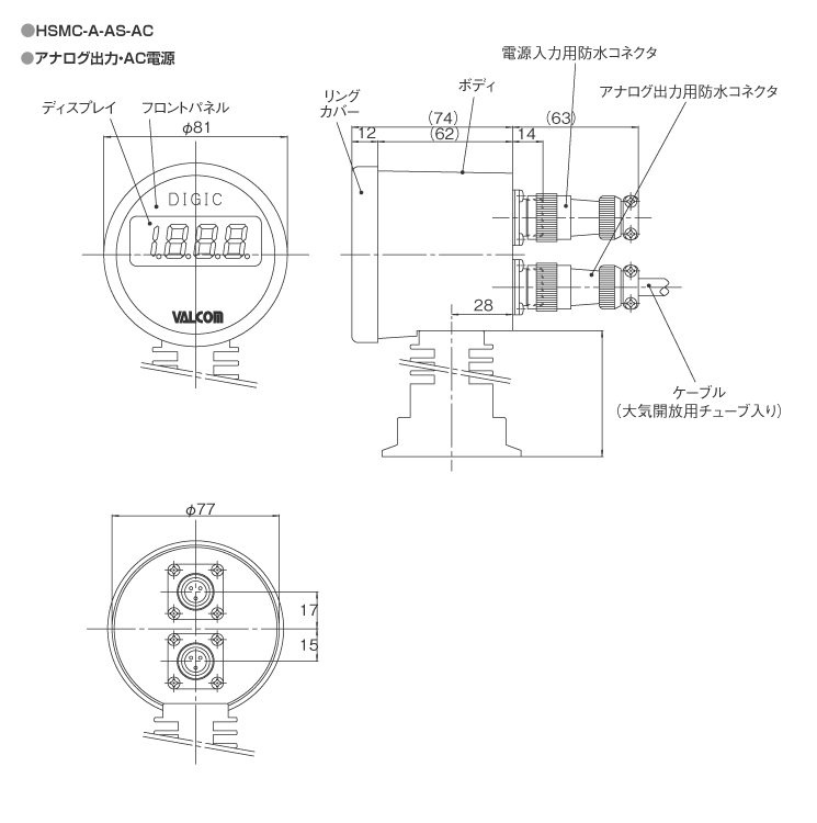 校正に関しては、ご発注時に上記型式選択⑤の「020、030=正圧側重視」or「021、031=負圧側重視」をご指定ください。(※3)付屬ケーブルについて:付屬ケーブルは大気解放用チューブ入りの特殊シールドケーブルのため、設定出力の負荷は30V以下でご使用ください。AC100V、200V回路では使用できません。結露しない狀況でのご使用では、大気解放用穴を開けて対応可能ですのでご相談ください。