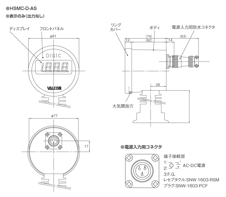 | ヒステリシス | ±0.5%R.C.±1digit. (負圧側 ±1%R.C.±1digit.) |