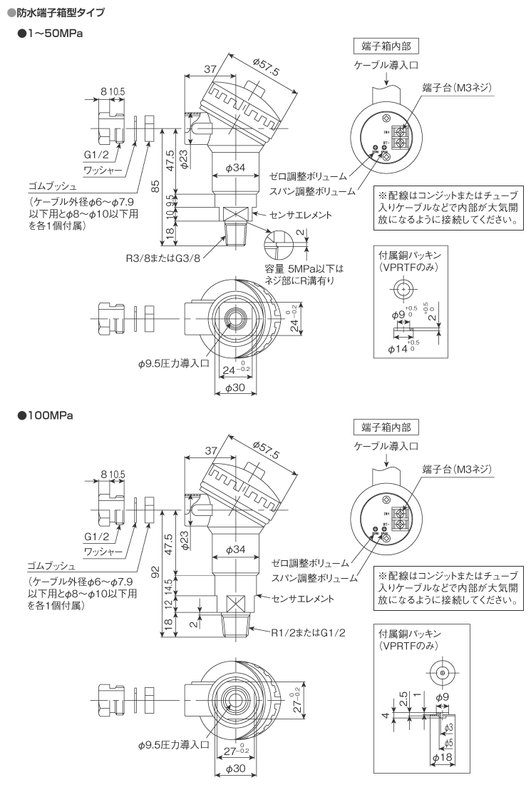 ※防水端子箱型は
