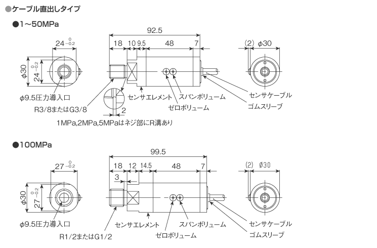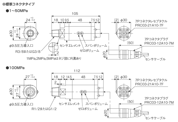 ※接続ネジ:G3/8(100MPaはG1/2のみ)