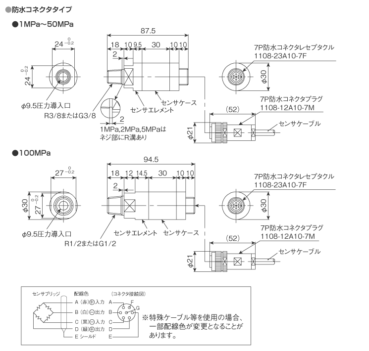 | VPRTF | 中高圧高精度タイプ圧力センサ ※接続ネジ:G3/8(100MPa:G1/2) | |||