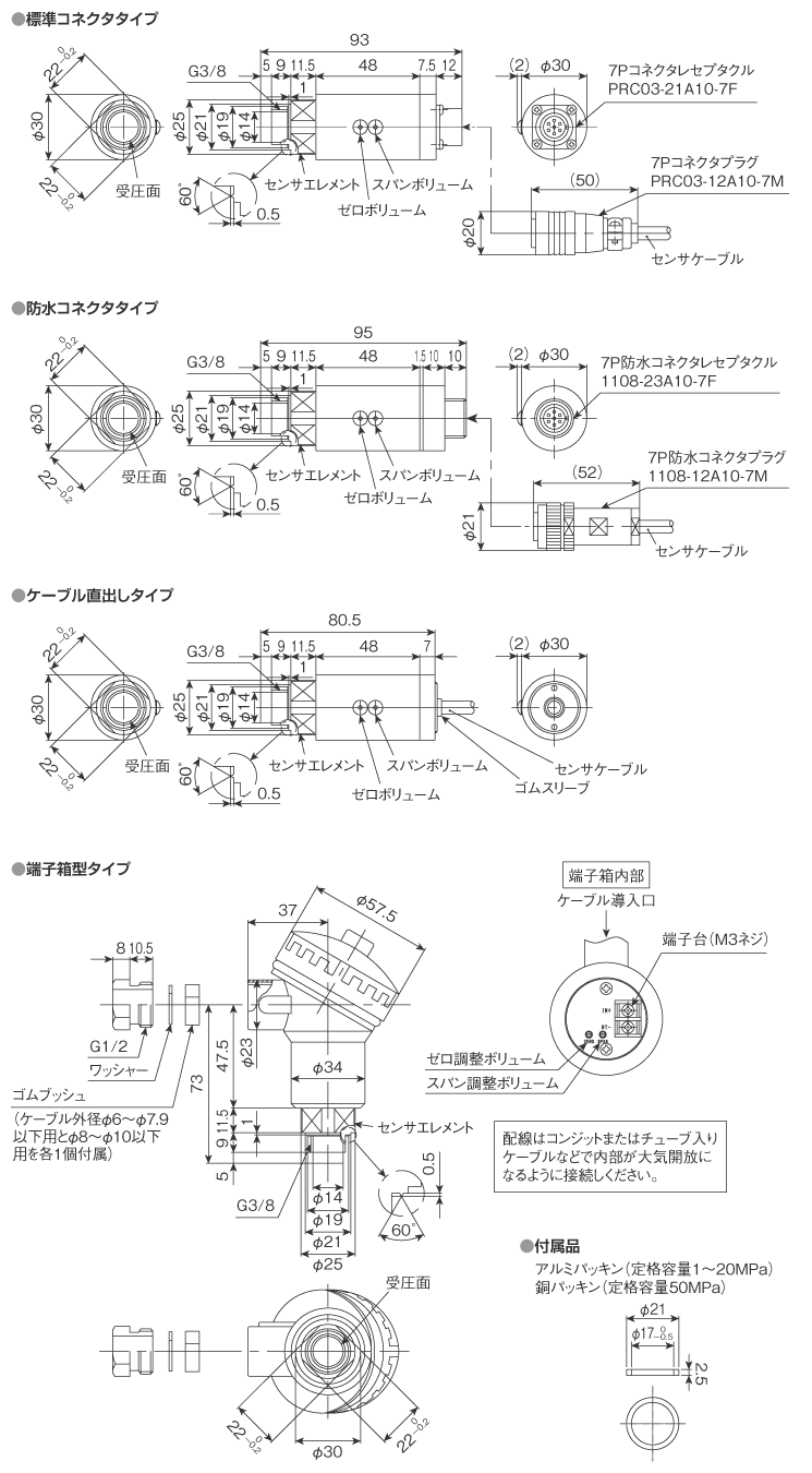 | 1.基本型式 | ○ | VPRF | フラッシュタイプ中高圧用アンプ內蔵圧力センサ ※接続ネジG3/8 | |||