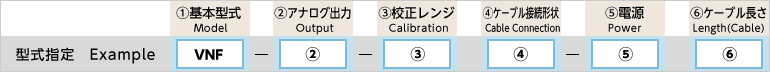 | 2.アナログ出力 ※防水端子箱型は A6のみの選択と なります | - | - | 出力種類 | 応答周波數 | 許容負荷抵抗 | 消費電流 |