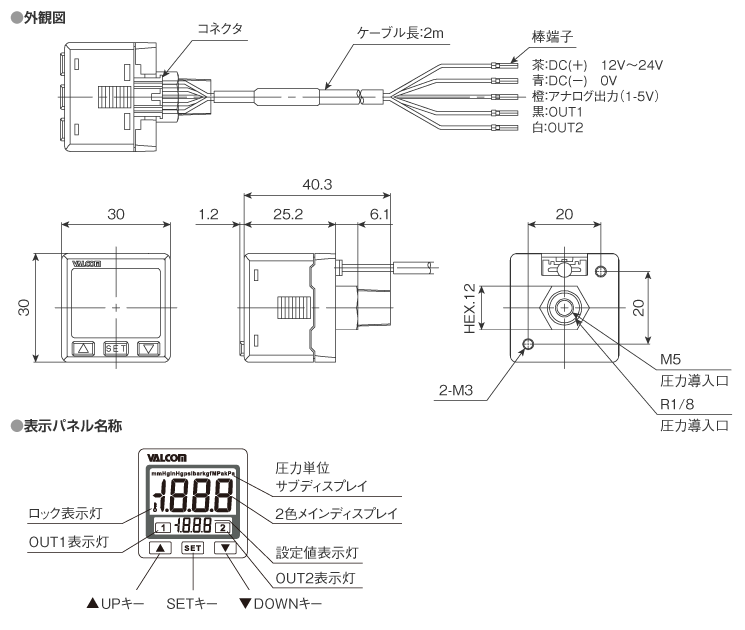 | 1.基本型式 | ○ | VSS | 超小型LED デジタル表示付圧力センサ | ||