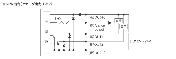 | スイッチ出力 | NPNオープンコレクタ出力 負荷電流:Max 125mA、供給電圧:Max DC30V、內(nèi)部電圧降下:Max 1.5V | |