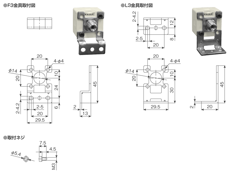 | 付屬品 | 取扱説明書、L3取付金具、F3取付金具、取付ネジ M3×L4.5(2本) | |