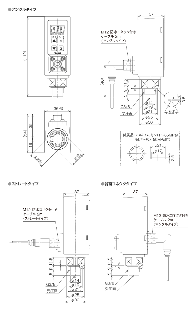 | 校正レンジ | 0~(1, 2, 5, 10, 20, 35, 50)MPa |
