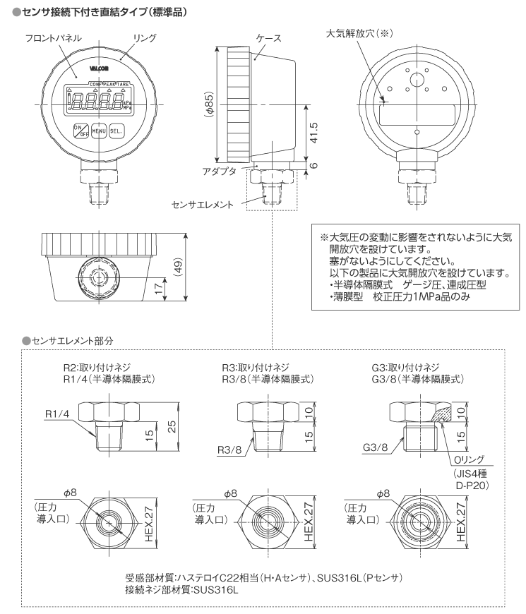 | 絶対圧 | H050KPA 50kPa abs | ||||