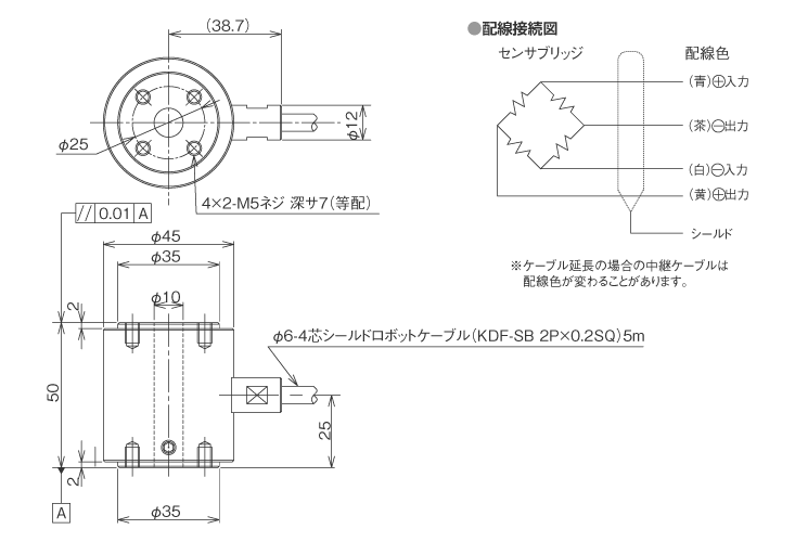 | ケーブル | φ6mm 4芯シールドロボットケーブル(KDF-SB)5m直結(jié) |