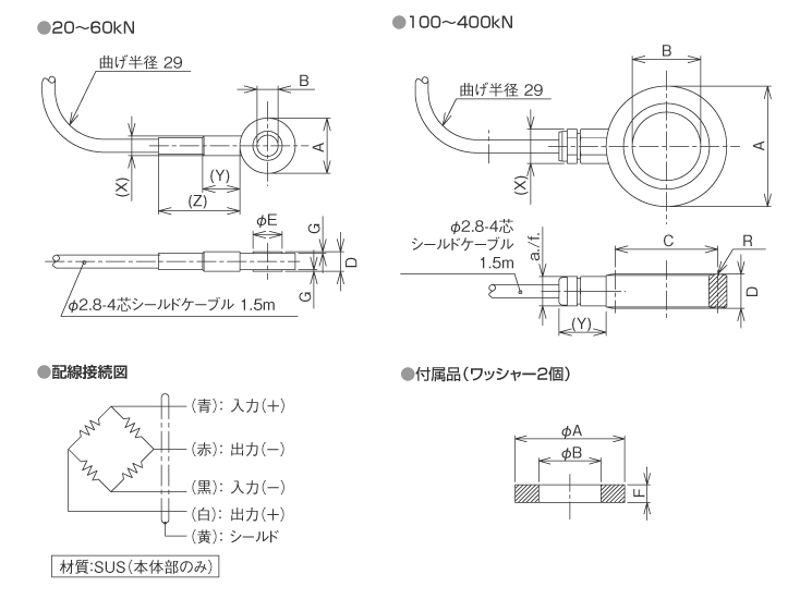 出力抵抗20~300kN: 350Ω±5Ω、400kN: 400Ω±5Ω