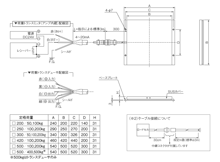 ※500kgはトランスデューサのみ