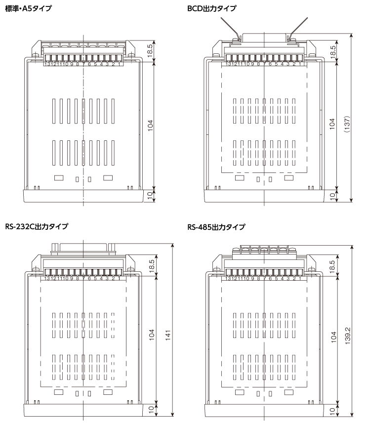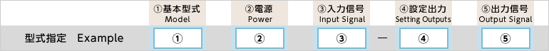| 4.設定出力 | S | 4設定 リレー出力 AC125V 0.3A / DC24V 1A(1設定あたり) | |