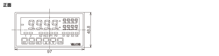 その他の機能表示スケーリング、アナログ出力スケーリング、表示ホールド(アッパーピーク/ボトムピーク/區間ピーク/ピークtoピーク/サンプルホールド)、オートゼロ、最大値/最小値表示、パターンセレクト、シミュレーション機能、入力値シフト 副表示ON/OFF、キープロテクト、主表示色可変表示、表示更新周期設定、省電力モードON/OFF、サンプリング速度設定、ダンピング時定數、ゼロサプレスON/OFF、FIXゼロ