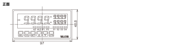 | 表示 | -9999~9999(小數點任意設定) LCD4桁 3色(赤?橙?緑)変色表示 |