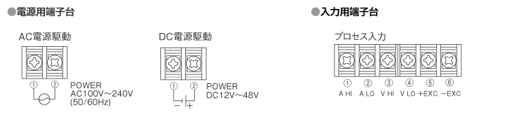 | 4.入力信號 | N | センサ供給電源24V 25mA | 1~5V or ±5V or 4~20mA or ±20mAの 4タイプ切換 (スケーリング機能付) | ||