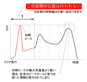 この機能を使用することにより比較條件として不要な初期ピーク値を無視して比較を行うことができます。