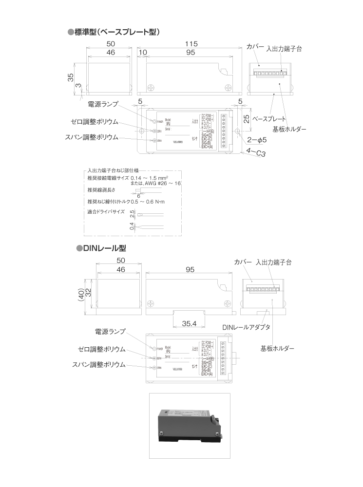 | 外形寸法 | ベースプレート型:115(W)×35(H)×50(D) DINレール型:95(W)×40(H)×50(D) |